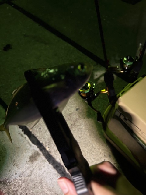 今回の釣行はライトにアミの他プランクトンが寄ってきました。クサフグ、シーバス、当然、アジも寄り、キャストしてカウント3ぐらいでふわふわさせていると最大23センチまでのアジが入れ食いになりました。