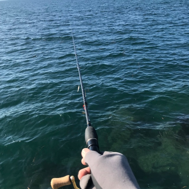 アジングロッドを片手に小磯に乗りました。