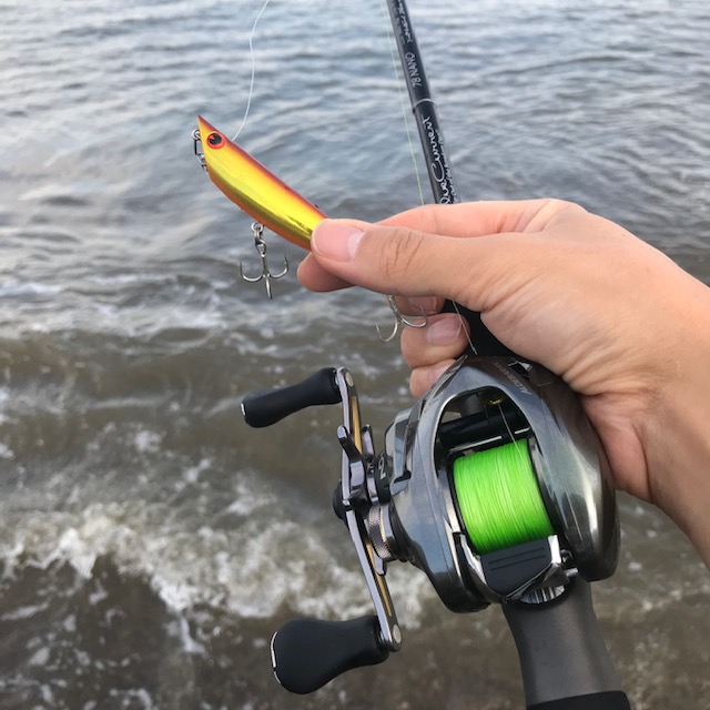 本来だとスピニングタックルでクロダイのトップウォーターゲームを展開するところですがベイトタックルで挑戦!
