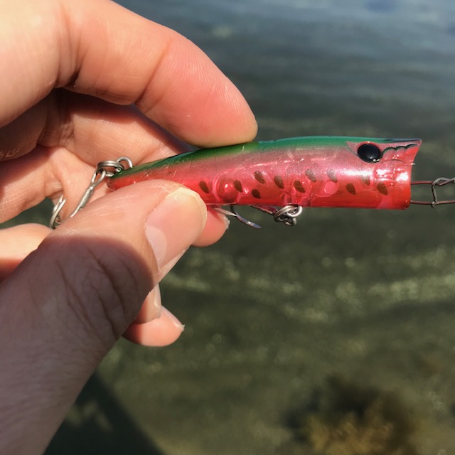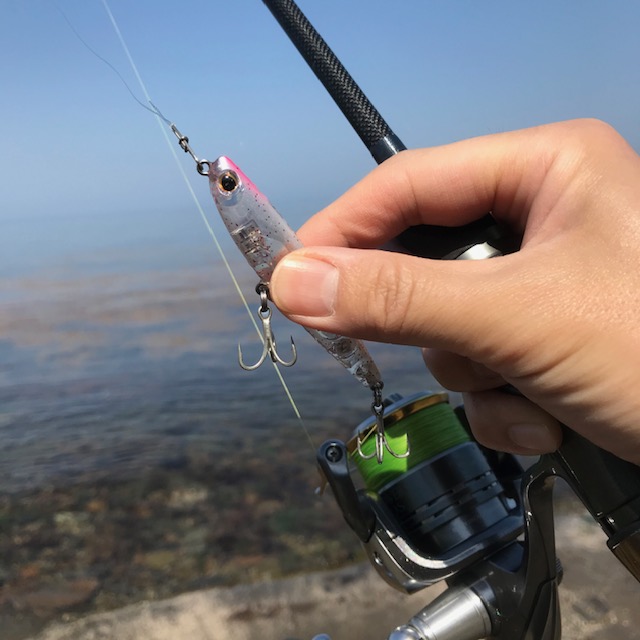 クロダイが付きそうな場所、回遊する場所を確認して、ポッパーやシンキングペンシルをローテションしながらキャストしていきます。
