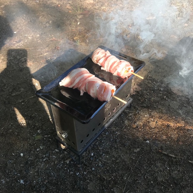 今回の簡単な焚き火飯は、みたらし団子に豚バラ肉を巻いてDODのぷちもえファイヤーで焚き火を作って、ヒロシ鉄板4.5mmで焼いて食べるがテーマです。