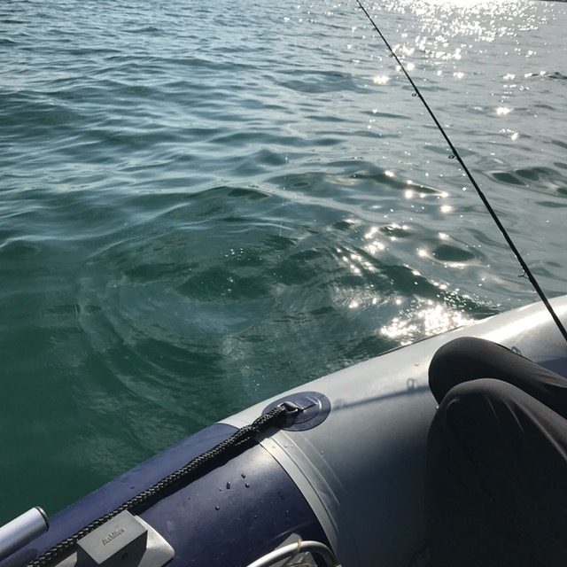 最後に2馬力船外機を設置し最後に魚探を付けましてボードに相方を先に乗せて私も飛び乗るように乗り込み船外機のチョークを伸ばして、 エンジンをかけて、暖気をしてから沖に向かって出船です。