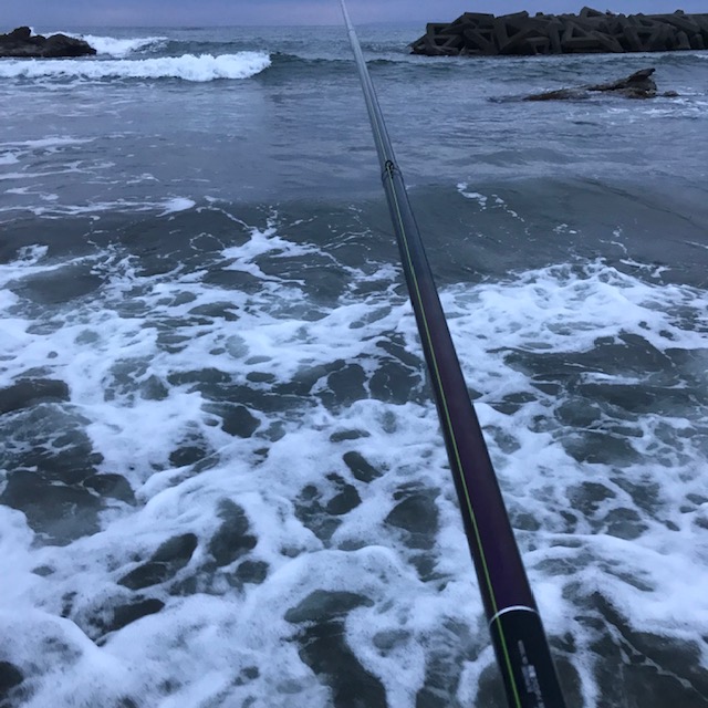今回の釣り場は通常の渚、サーフは荒れていたので沖にテトラ帯がある場所を選択して