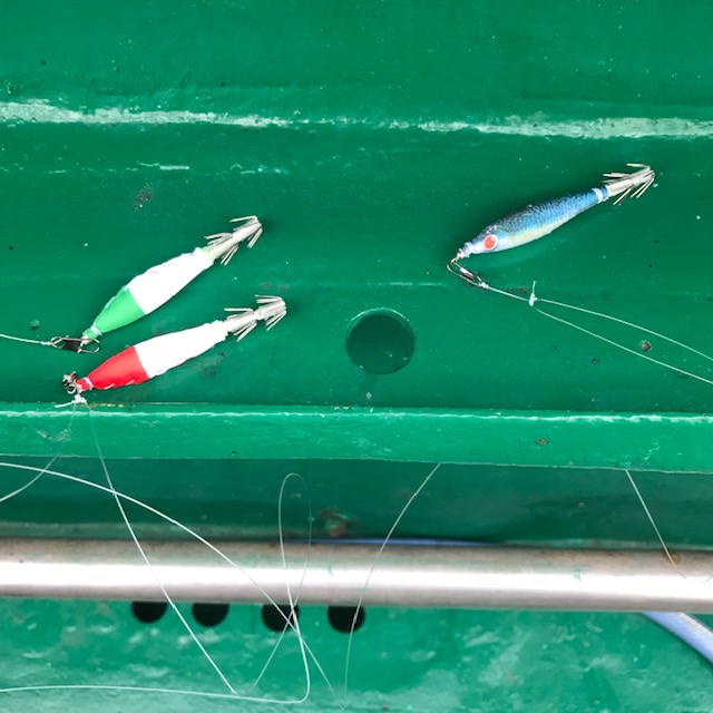 釣具屋さんのオリジナル3本仕掛けを購入も考えましたが持っている浮きスッテでも十分釣れるとのこと。