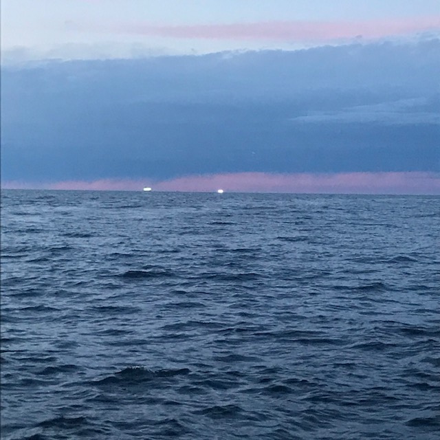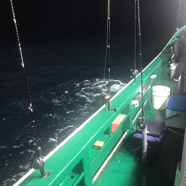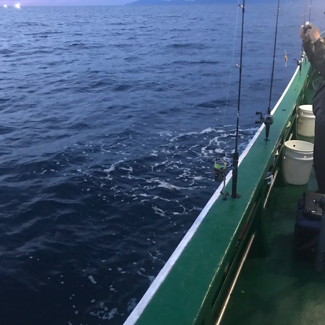 沖のスルメイカ漁の漁火が綺麗に見えます。まもなく、ポイント到着!