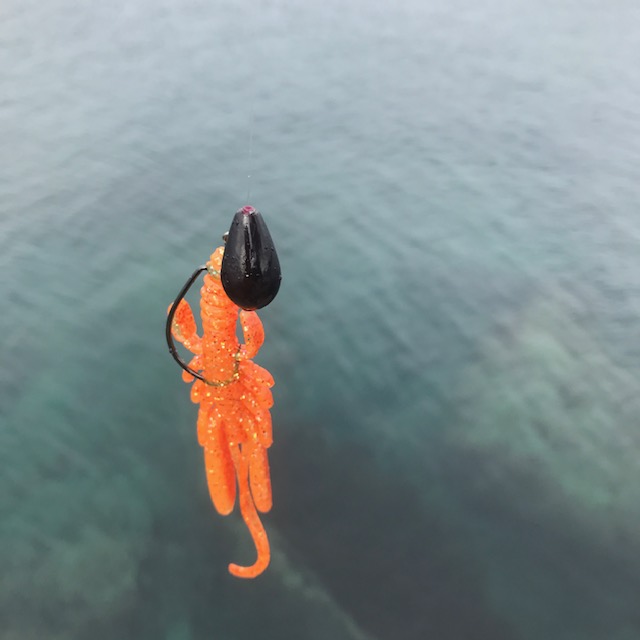 小磯でソルトベイトフィネスでキジハタ、カサゴを狙う、ロックフィッシュゲームに切り替え、根か掛かりしにくいビフテキリグで挑戦です。