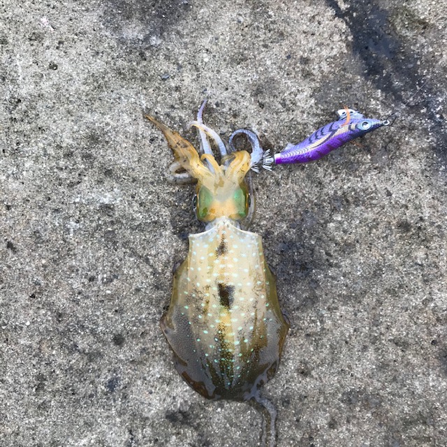 その後2.5号のエギ、カラーをムラサキでドラグを滑らす良型アオリイカが掛かりましたが寄せている時にフックアウト